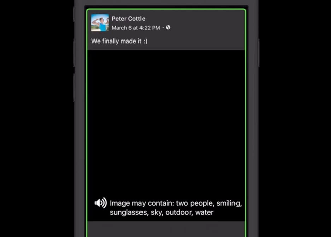 ÆäÀ̽ººÏ ´º½ºÇǵ带 º¼ ¶§¸¶´Ù ¸¹Àº »çÁøµéÀÌ »õ·Ó°Ô ¿Ã¶ó¿Â´Ù. »çÁøÀÌ Áß½ÉÀ̶ó´Â ÀǹÌÀε¥, ¹®Á¦´Â ½Ã°¢Àå¾ÖÀεéÀº ÆäÀ̽ººÏÀ» ÅëÇØ Ä£±¸µéÀÇ ¼Ò½ÄÀ» Á¢Çϱâ Èûµé´Ù´Â °ÍÀÌ´Ù. ÆäÀ̽ººÏÀÇ ¿£Áö´Ï¾îµéÀº ÀÌ ¹®Á¦¸¦ ÇØ°áÇϱâ À§ÇØ ÀΰøÁö´É(AI)À» ÀÌ¿ëÇÏ¿© ½Ã°¢Àå¾ÖÀÎÀ̳ª ¶Ç´Â, ºÎºÐ ½Ã°¢Àå¾ÖÀε鿡°Ô »çÁøÀ» ¼³¸íÇØ ÁÖ´Â ±â´ÉÀ» °³¹ßÇß´Ù.