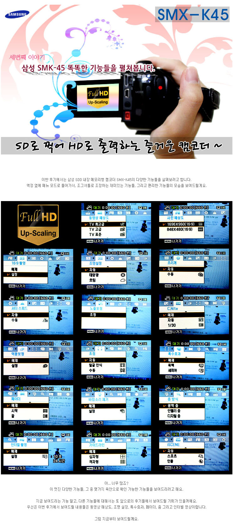 [ »ï¼º SMX-K45 ] ÃÔ¿µ ¸ðµå, ÇØ»óµµ, Á¶¸í, Ư¼öÈ¿°ú, ÆäÀÌ´õ, ÁÜ, ÀÎÅ͹ú ±â´É¿¡ µû¸¥ ¿µ»óÀ» º¸¿©µå¸³´Ï´Ù.