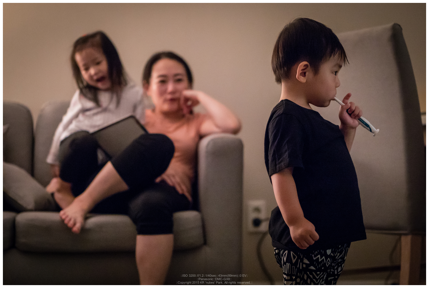 Aperture Priority | Multi-Segment | Auto WB | 1/40s | F1.2 | 0.00 EV | ISO-3200 | 43.00mm | 35mm equiv 89mm | Flash not fired; Compulsory flash mode |