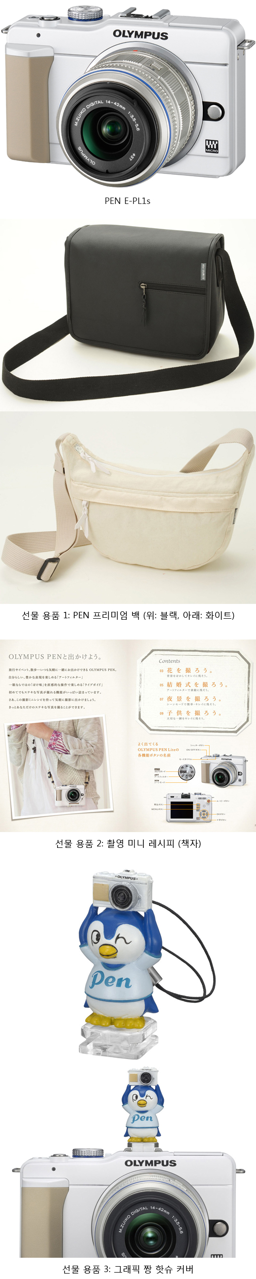 4ÀϺÎÅÍ ½ÃÀ۵Ǵ ÀÌ Çà»ç´Â, E-PL1sÀ» ±¸ÀÔÇÏ´Â °í°´¿¡°Ô ¿Ã¸²Çª½º Ææ ½Ã¸®Áî ¼ö³³¿¡ ÀûÇÕÇÑ "PEN ÇÁ¸®¹Ì¾ö °¡¹æ(ºí·¢, ÈÀÌÆ®)", ÃÔ¿µ ¿ä·É ¹× ÆÁÀ» ¾Ë·ÁÁÖ´Â "ÃÔ¿µ ¹Ì´Ï ·¹½ÃÇÇ", Ä«¸Þ¶ó ÇÖ½´¿¡ ¼³Ä¡ °¡´ÉÇϰí ÇÚµåÆù Áٷεµ ¿¬Ãâ °¡´ÉÇÑ "Ææ ¯ ÇÖ½´ Ä¿¹ö" µî 3 °¡Áö ¼¼Æ®¸¦ ¼±¹°ÇÏ´Â °ÍÀÌ´Ù.