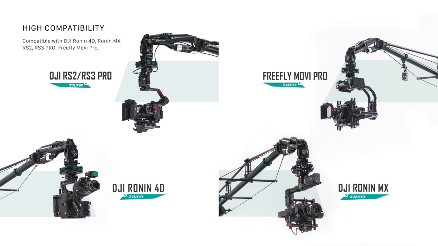 Hydra Arm Mini´Â DJI RS 3 PRO ¹× RS 2µî°ú ÇÔ²² »ç¿ëÇÒ ¼ö ÀÖµµ·Ï Á¦À۵ǾúÀ¸¸ç Ronin 4D, Ronin MX ¹× Freefly Movi Pro¿Í °°Àº ´Ù¾çÇÑ Áü¹ú ¹× Ä«¸Þ¶ó ½Ã½ºÅÛ°ú ȣȯµÈ´Ù.