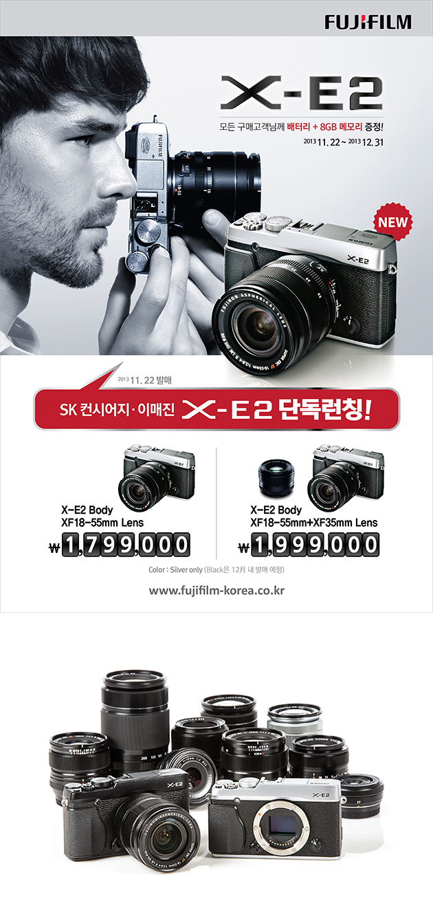¼ÒºñÀÚ °¡°ÝÀº ÈÄÁö³í XF18-55mm ·»Áî ŰƮ°¡ 179¸¸9000¿ø, XF18-55mm¿Í XF35mmÀÇ ´õºí·»Áî ŰƮ´Â 199¸¸9000¿øÀÌ´Ù. »ö»óÀº ºí·¢, ½Ç¹ö 2Á¾À¸·Î ±¸¼ºµÆ´Ù. ÄÁ½Ã¾îÁö, À̸ÅÁø ¸ÅÀå¿¡¼ ÆÇ¸ÅÇϸç Ãâ½Ã ±â³äÀ¸·Î 12¿ù 31ÀϱîÁö ±¸¸ÅÇÏ´Â ¸ðµç °í°´¿¡°Ô Á¤Ç° ¹èÅ͸®¿Í 8GB SD ¸Þ¸ð¸®Ä«µå¸¦ ÁõÁ¤ÇÑ´Ù.