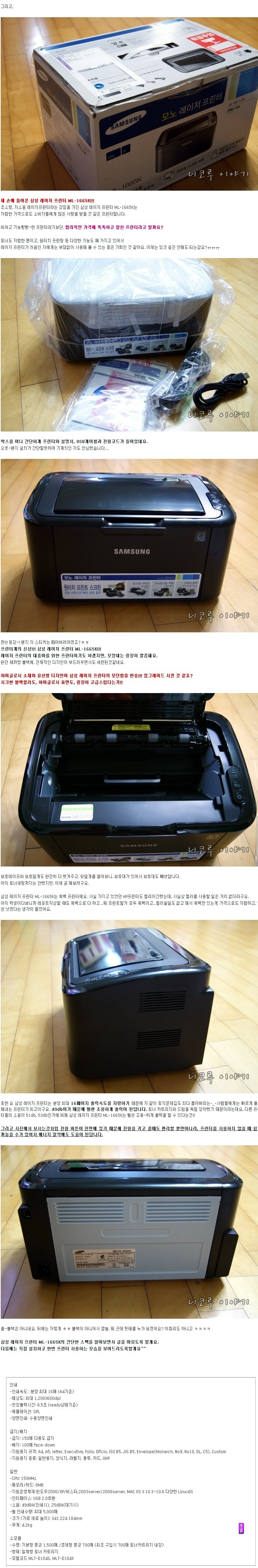 »ï¼º ·¹ÀÌÀú ÇÁ¸°ÅÍ ML-1665K üÇè´Ü ¹ß´ë½Ä°ú °³ºÀ±â!