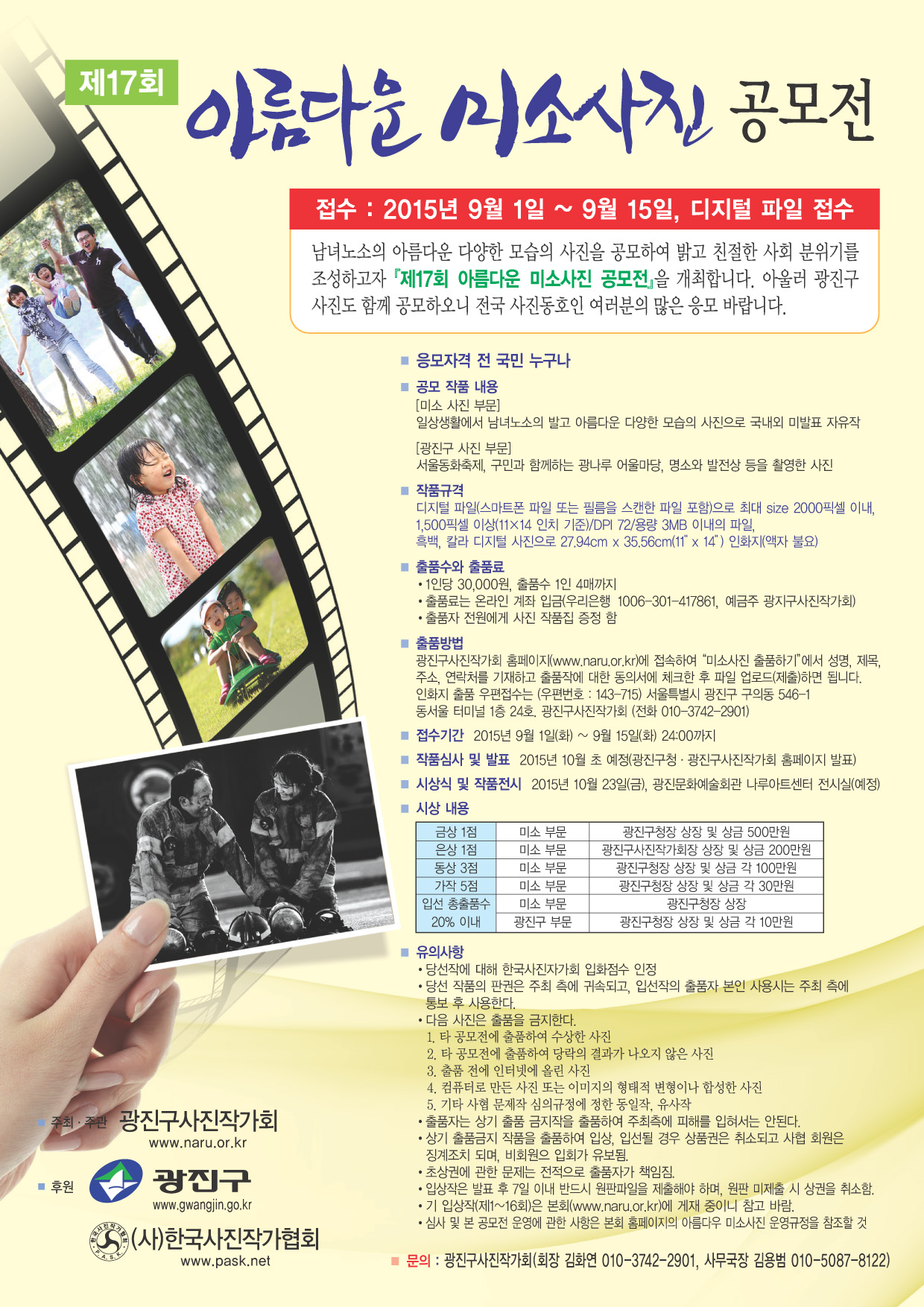Á¦17ȸ ¾Æ¸§´Ù¿î ¹Ì¼Ò»çÁø°ø¸ðÀü ¾È³» 2015³â 9¿ù 1ÀÏ ~ 9¿ù 15ÀÏ ±îÁö °ø¸ð³»¿ë ¹× ½Ã»ó³»¿ª: ȨÆäÀÌÁö ÂüÁ¶